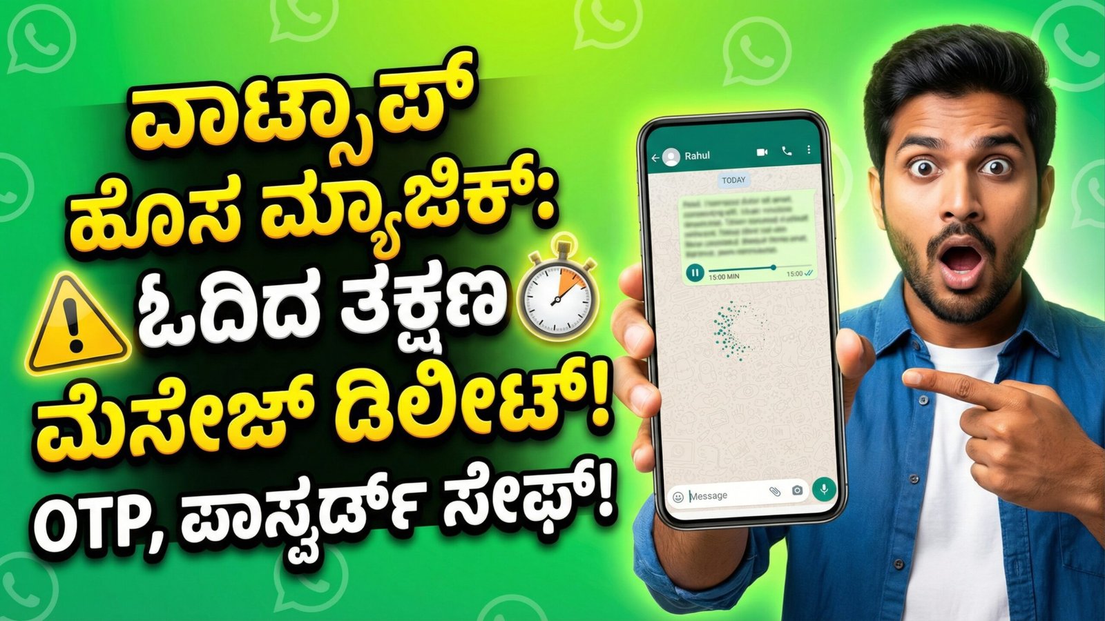 ವಾಟ್ಸಾಪ್ ಬಳಕೆದಾರರಿಗೆ ಎಚ್ಚರಿಕೆ: ‘ಓದಿದ ತಕ್ಷಣ ಡಿಲೀಟ್’ ಫೀಚರ್ ಶೀಘ್ರದಲ್ಲೇ — ಪ್ರೈವಸಿ ಹೆಚ್ಚಳಕ್ಕೆ ಹೊಸ ಹೆಜ್ಜೆ
