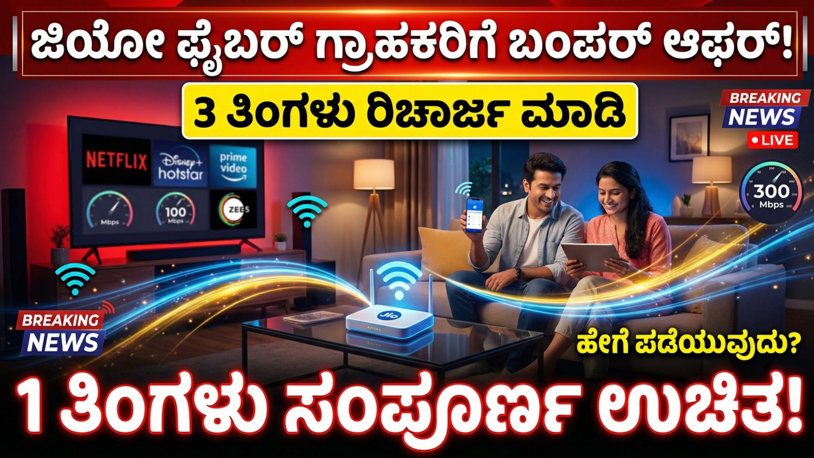 ಜಿಯೋ ಫೈಬರ್ ಸೂಪರ್ ಆಫರ್: 3 ತಿಂಗಳು ಪಾವತಿಸಿ 4 ತಿಂಗಳು ಹೈ-ಸ್ಪೀಡ್ ಇಂಟರ್ನೆಟ್ ಉಚಿತ!