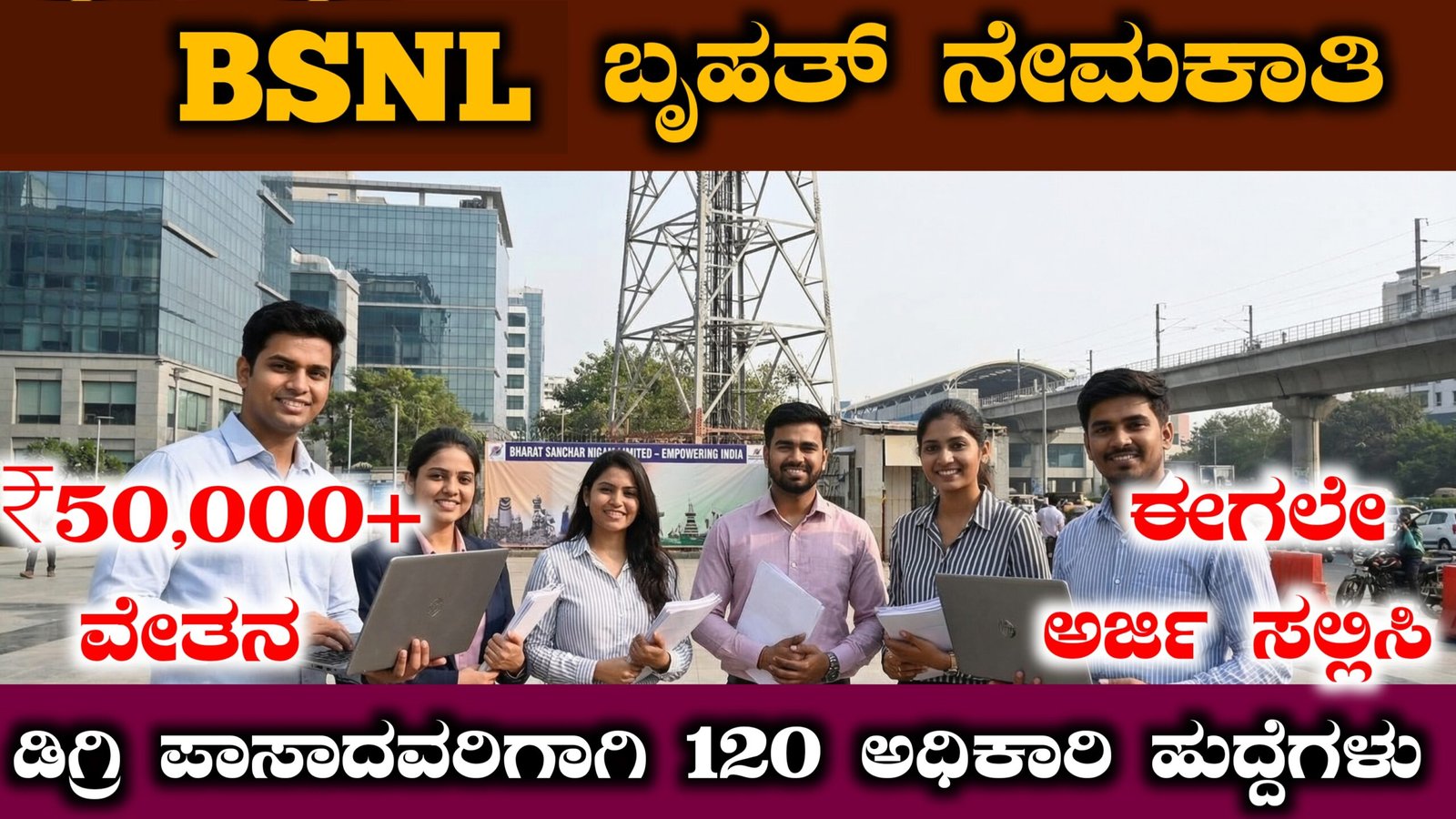 ಭಾರತದಲ್ಲಿ ದೂರಸಂಪರ್ಕ ಕ್ಷೇತ್ರದಲ್ಲಿ ಪ್ರಮುಖ ಪಾತ್ರ ವಹಿಸಿರುವ ಸರ್ಕಾರಿ ಸಂಸ್ಥೆಯಾದ ಭಾರತ್ ಸಂಚಾರ್ ನಿಗಮ್ ಲಿಮಿಟೆಡ್ (BSNL) 2026ನೇ ಸಾಲಿನ ಬೃಹತ್ ನೇಮಕಾತಿ ಅಧಿಸೂಚನೆಯನ್ನು ಪ್ರಕಟಿಸಿದೆ. ದೇಶಾದ್ಯಂತ ಖಾಲಿ ಇರುವ 120 ಸೀನಿಯರ್ ಎಕ್ಸಿಕ್ಯುಟಿವ್ ಟ್ರೈನಿ (Senior Executive Trainee) ಹುದ್ದೆಗಳನ್ನು ಭರ್ತಿ ಮಾಡಲು ಅರ್ಹ ಅಭ್ಯರ್ಥಿಗಳಿಂದ ಆನ್ಲೈನ್ ಮೂಲಕ ಅರ್ಜಿಗಳನ್ನು ಆಹ್ವಾನಿಸಲಾಗಿದೆ.