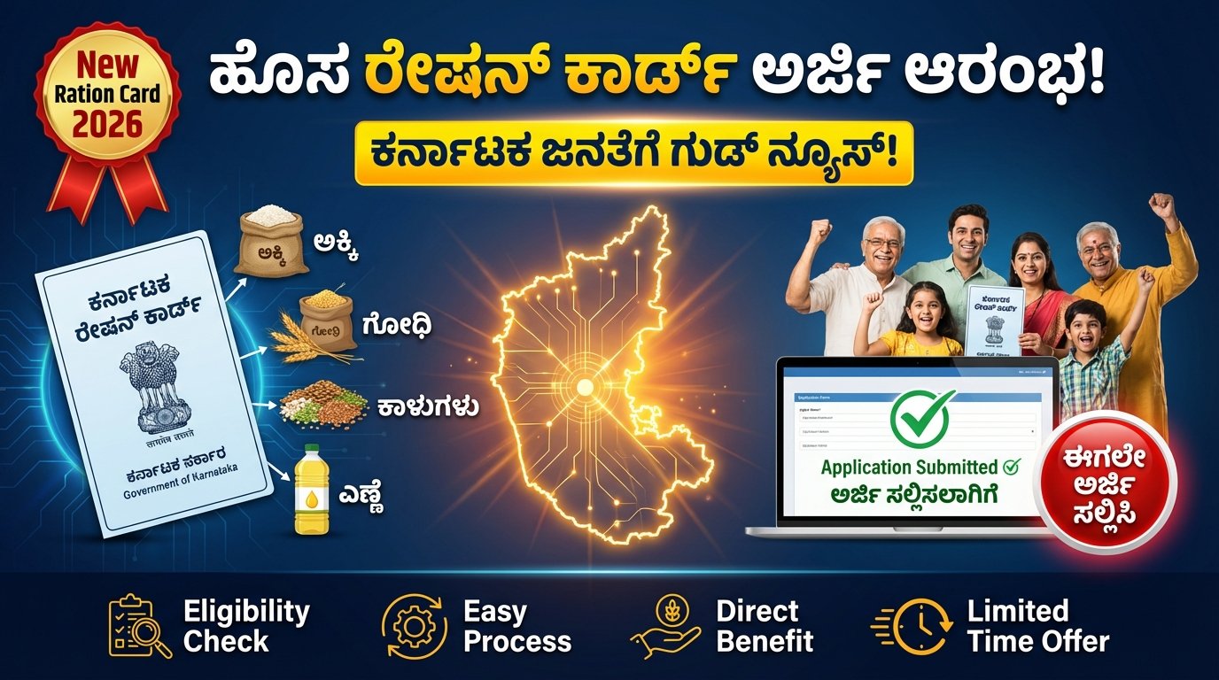 New Ration Card Applying Start: ಕರ್ನಾಟಕದ ಜನತೆಗೆ ಮಹತ್ವದ ಸುದ್ದಿ – ಹೊಸ ರೇಷನ್ ಕಾರ್ಡ್ ಪಡೆಯಲು ‘ಗೋಲ್ಡನ್ ಚಾನ್ಸ್’
