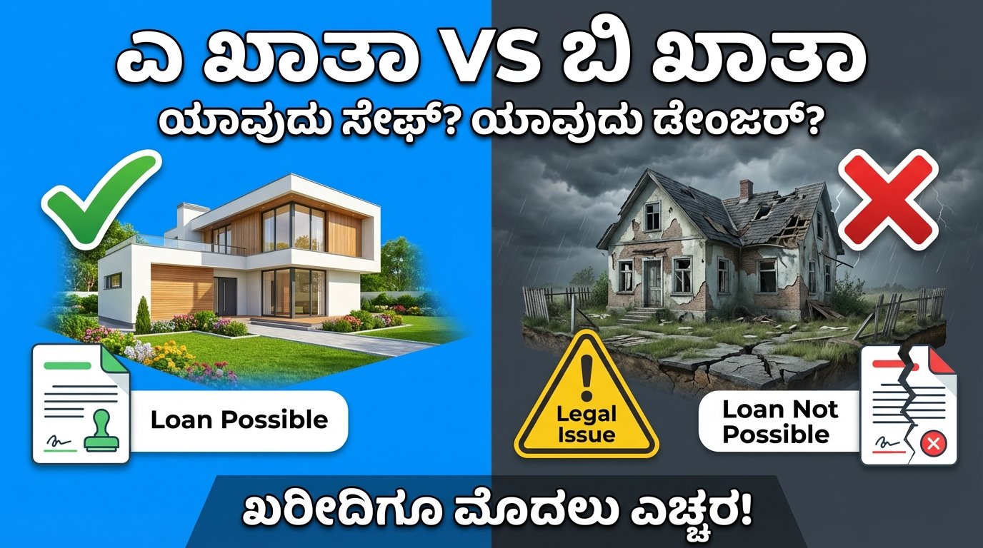A Khata Vs B Khata: ಯಾವುದು ಸೇಫ್? ಯಾವುದಕ್ಕೆ ಲೋನ್ ಸಿಗುತ್ತೆ? ಆಸ್ತಿ ಕೊಳ್ಳುವ ಮುನ್ನ ಈ ಸತ್ಯ ತಿಳಿಯಿರಿ ಬೆಂಗಳೂರು ಸೇರಿದಂತೆ ಕರ್ನಾಟಕದ ಬಹುತೇಕ ನಗರ ಪ್ರದೇಶಗಳಲ್ಲಿ ಮನೆ ಅಥವಾ ಜಮೀನು ಖರೀದಿಸಲು ಹೋಗುವಾಗ ಜನರು ಎದುರಿಸುವ ಮೊದಲ ಗೊಂದಲವೇ A Khata ಅಥವಾ B Khata. ಬಹಳಷ್ಟು ಜನರಿಗೆ “ಎರಡೂ ಖಾತಾ ಇದ್ದರೆ ಸಾಕು” ಅನ್ನುವ ತಪ್ಪು ಕಲ್ಪನೆ ಇದೆ. ಆದರೆ ವಾಸ್ತವದಲ್ಲಿ ಈ ಎರಡರ ನಡುವೆ ಇರುವ ವ್ಯತ್ಯಾಸಗಳು ನಿಮ್ಮ ಲೋನ್ … Read more