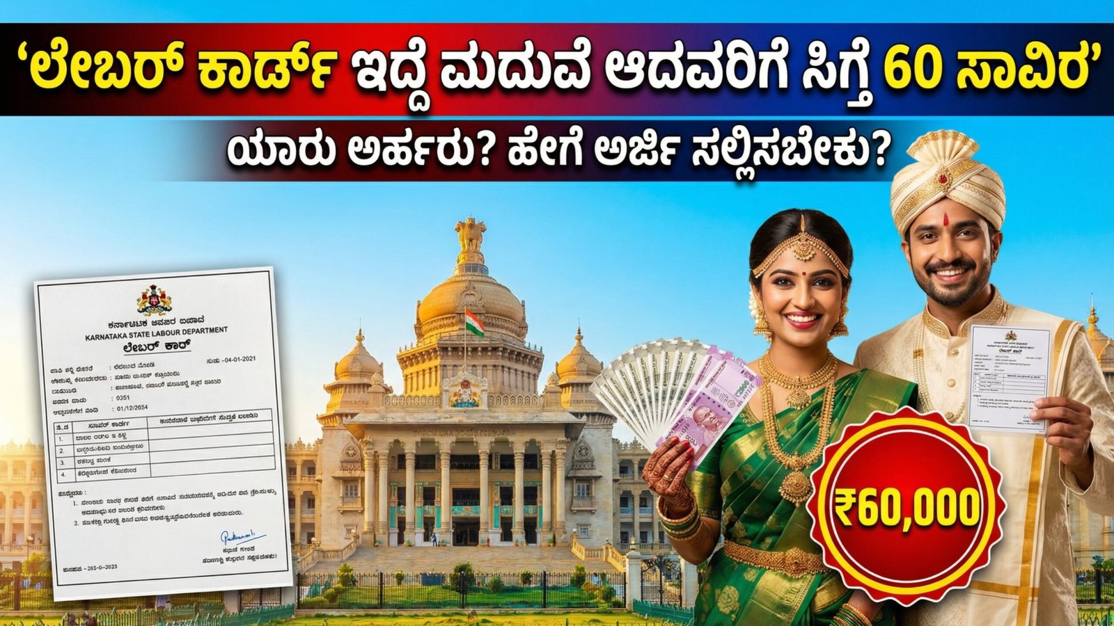 ಲೇಬರ್ ಕಾರ್ಡ್ ಇದ್ದರೆ ಮದುವೆಗೆ ₹60,000 ನೆರವು: ಕರ್ನಾಟಕ ಸರ್ಕಾರದ ವಿಶೇಷ ಯೋಜನೆಗೆ ಅರ್ಜಿ ಹೇಗೆ? ಸಂಪೂರ್ಣ ಮಾಹಿತಿ ಇಲ್ಲಿದೆ