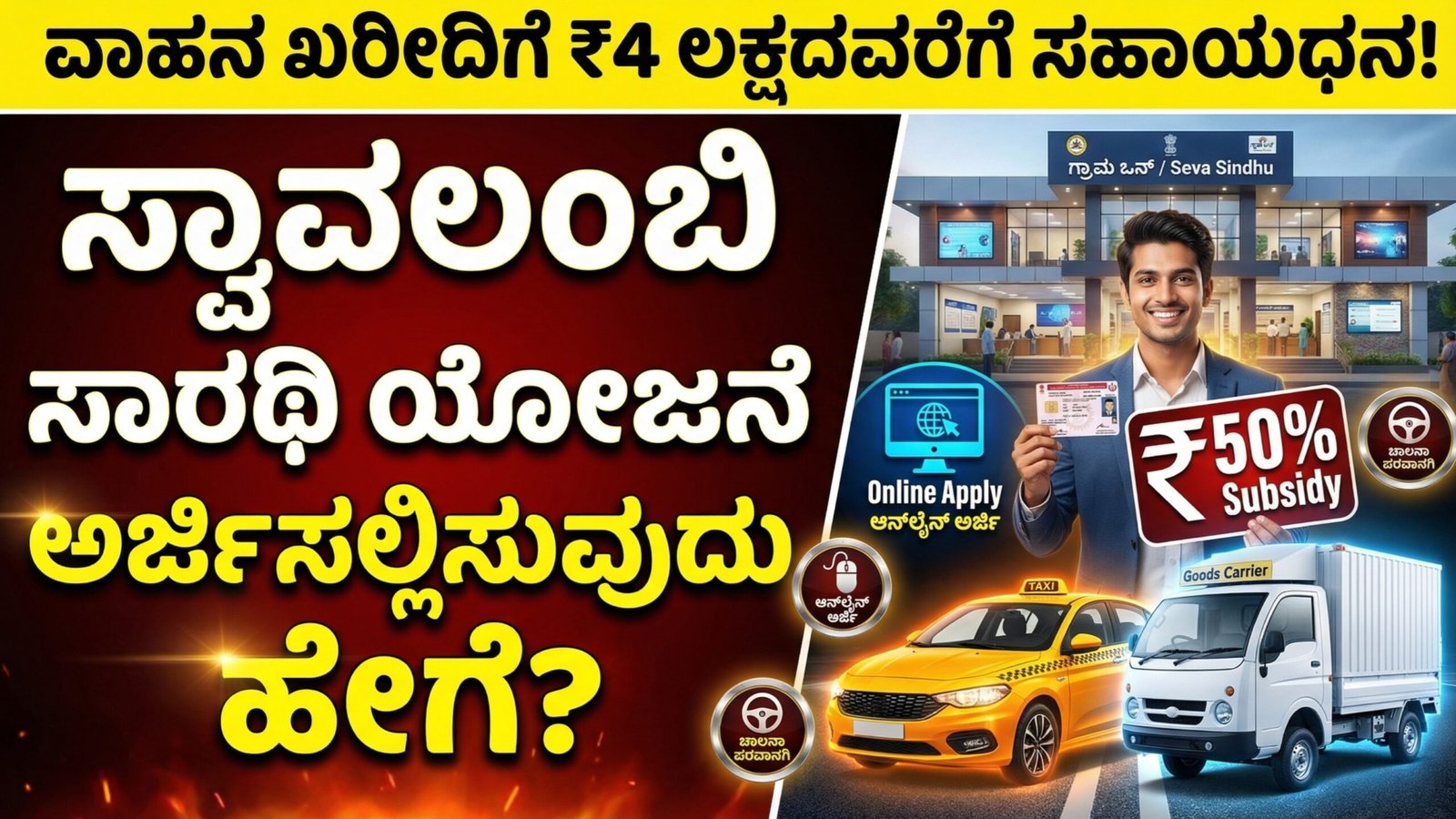 ಸ್ವಾವಲಂಬಿ ಸಾರಥಿ ಯೋಜನೆಗೆ ಅರ್ಜಿ ಆಹ್ವಾನ: ನಿರುದ್ಯೋಗಿ ಯುವಕರಿಗೆ 4 ಲಕ್ಷದವರೆಗೆ ಸಹಾಯಧನ