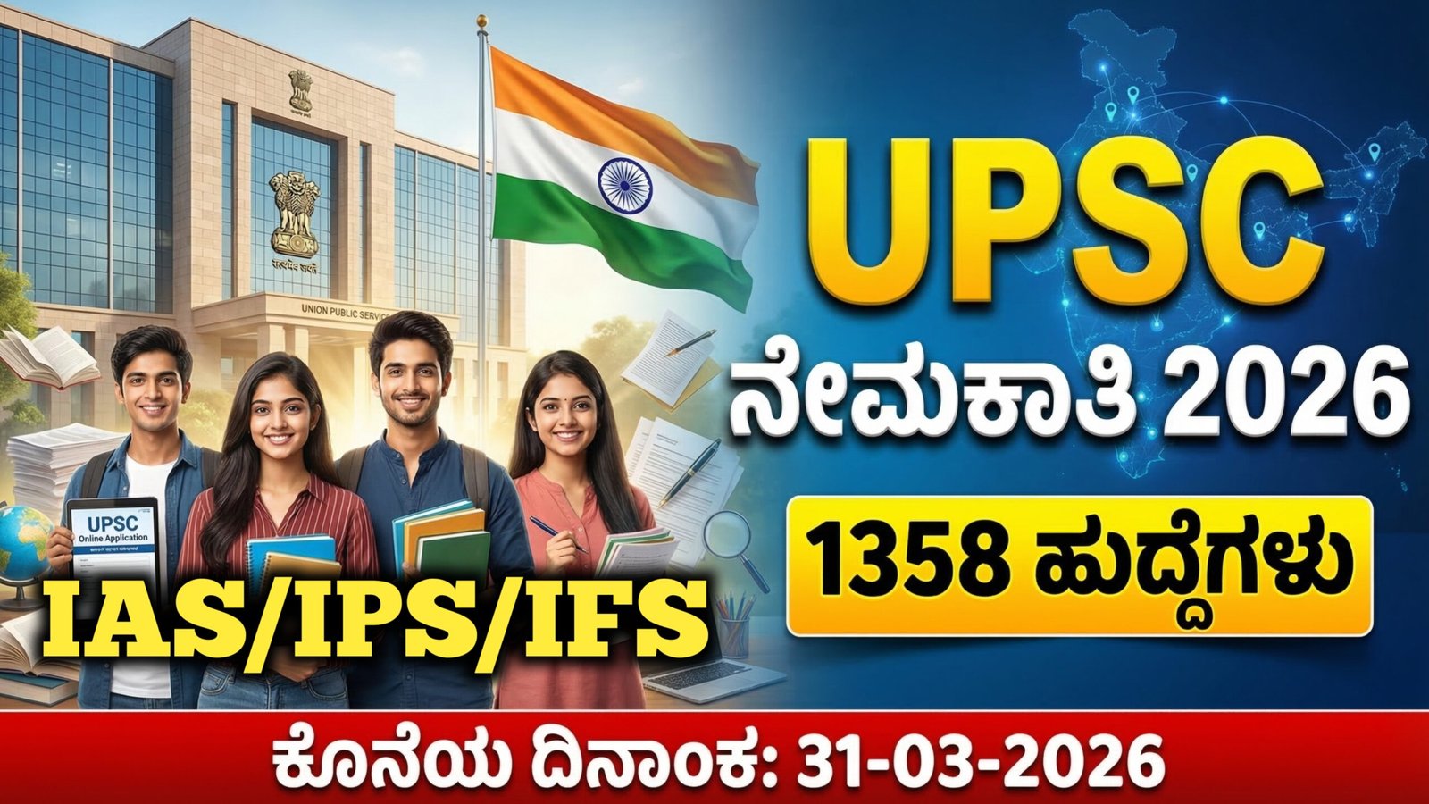 ಭಾರತ ಸರ್ಕಾರದ ಅತ್ಯಂತ ಪ್ರತಿಷ್ಠಿತ ನೇಮಕಾತಿ ಸಂಸ್ಥೆಯಾದ Union Public Service Commission (UPSC) ವತಿಯಿಂದ 2026ನೇ ಸಾಲಿನ ಪ್ರಮುಖ ಉದ್ಯೋಗಾವಕಾಶ ಪ್ರಕಟಿಸಲಾಗಿದೆ. ದೇಶದ ವಿವಿಧ ಸರ್ಕಾರಿ ಆರೋಗ್ಯ ಸಂಸ್ಥೆಗಳಲ್ಲಿ ಸೇವೆ ಸಲ್ಲಿಸಲು ಆಸಕ್ತಿ ಹೊಂದಿರುವ ವೈದ್ಯಕೀಯ ಪದವಿ ಪಡೆದ ಅಭ್ಯರ್ಥಿಗಳಿಗೆ ಇದು ಅತ್ಯುತ್ತಮ ಅವಕಾಶವಾಗಿದೆ. UPSC ಮಾರ್ಚ್ 2026ರ ಅಧಿಕೃತ ಅಧಿಸೂಚನೆಯ ಮೂಲಕ ಒಟ್ಟು 1358 ವೈದ್ಯಕೀಯ ಅಧಿಕಾರಿ (Medical Officer) ಹುದ್ದೆಗಳನ್ನು ಭರ್ತಿ ಮಾಡಲು ಅರ್ಹ ಮತ್ತು ಆಸಕ್ತ ಅಭ್ಯರ್ಥಿಗಳಿಂದ ಆನ್ಲೈನ್ ಮೂಲಕ ಅರ್ಜಿಗಳನ್ನು … Read more